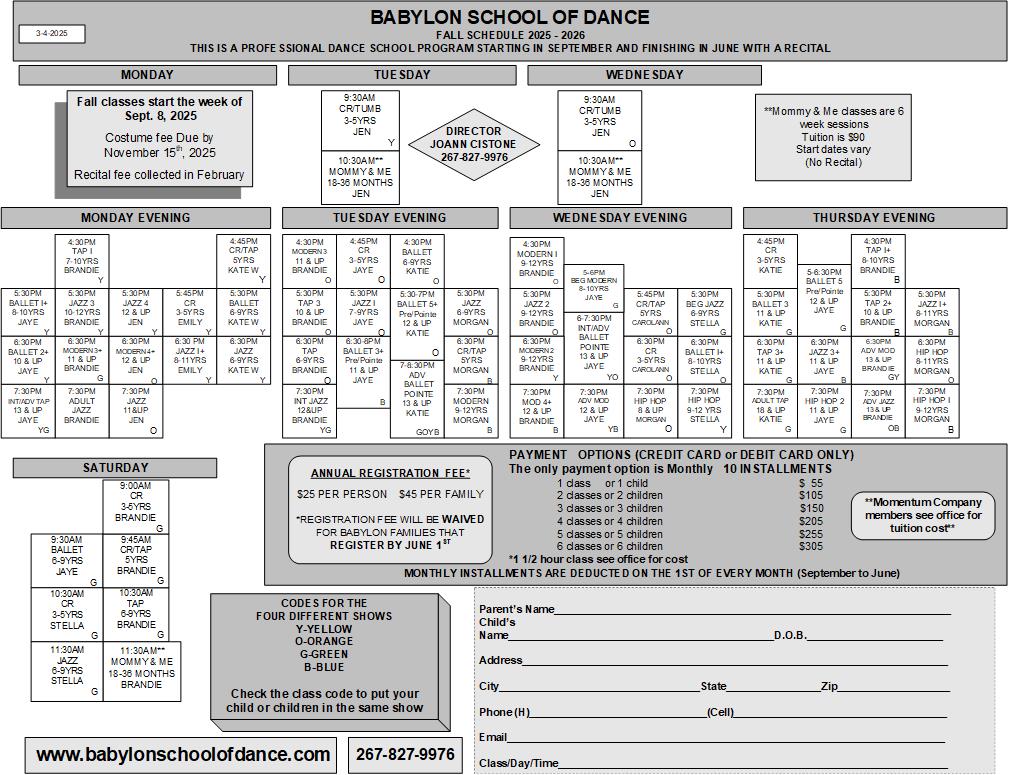 2025-2026 Fall Schedule